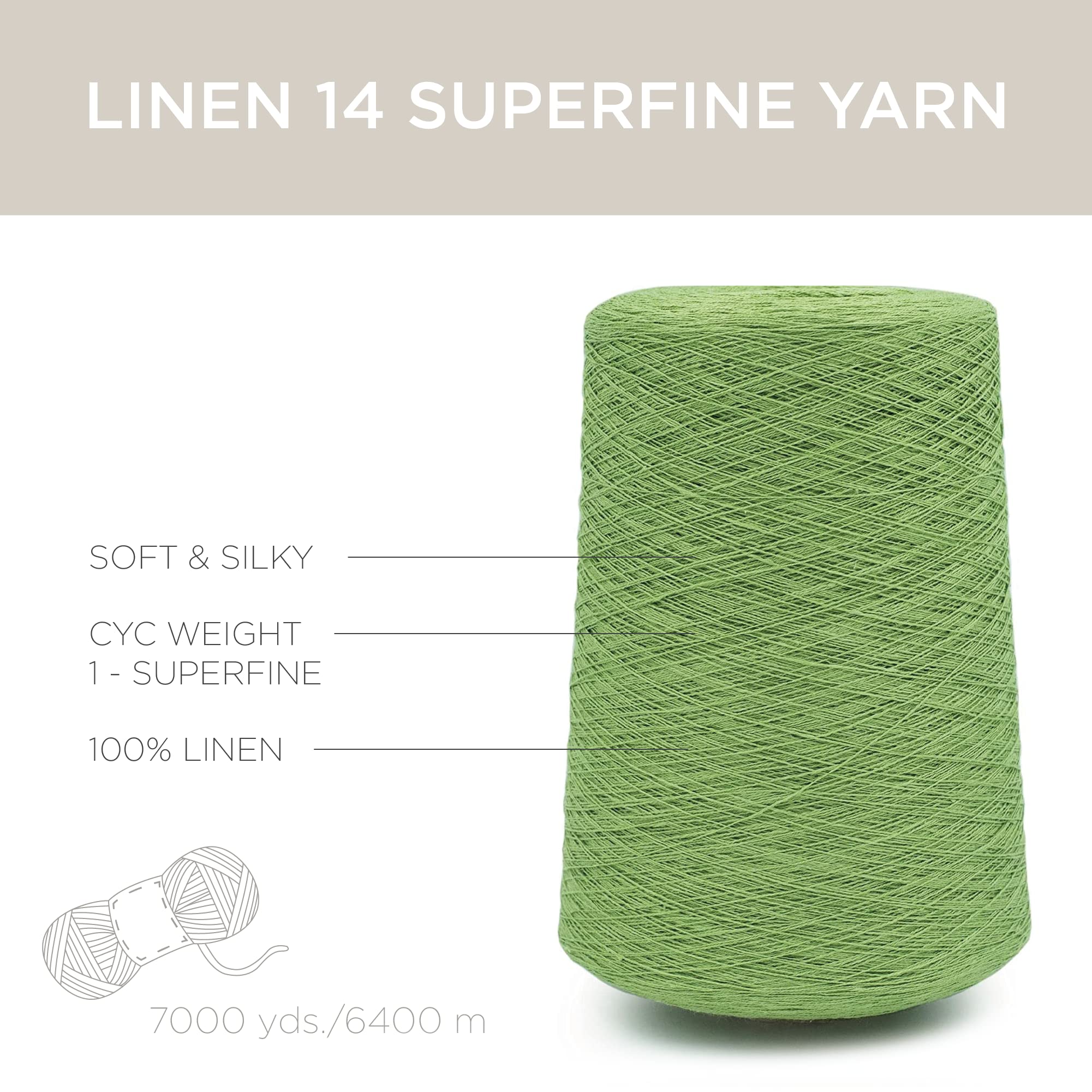 - FIBER COUNT: Our cone of fine, supple yarn is made from 100% linen thread. This yarn for crafts is rated CYC #0 lace and has a wonderful color, making it a good yarn for any craft kit.